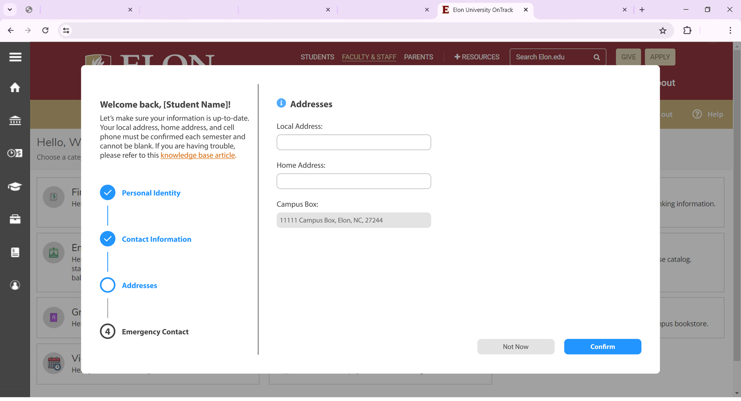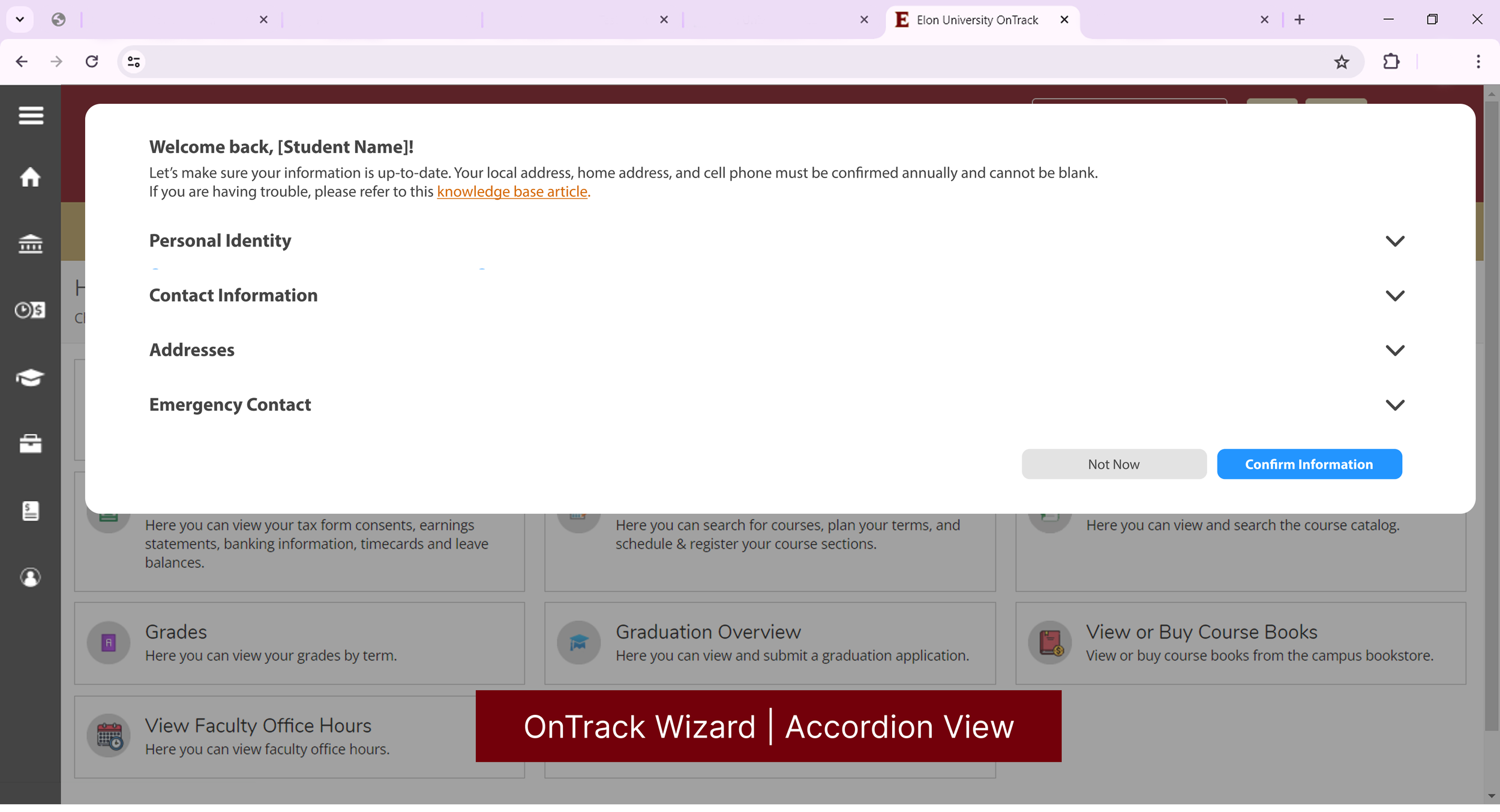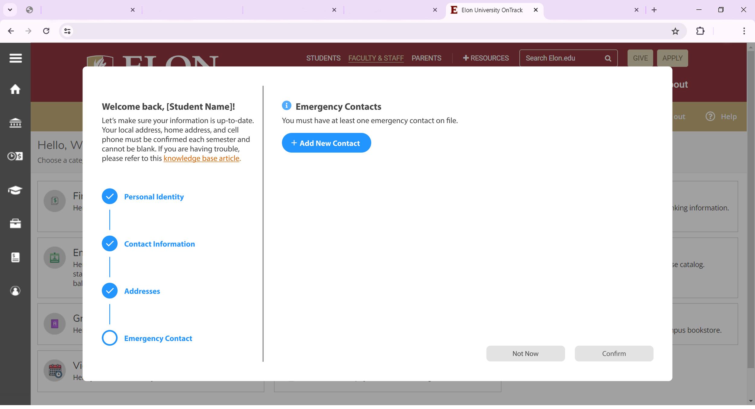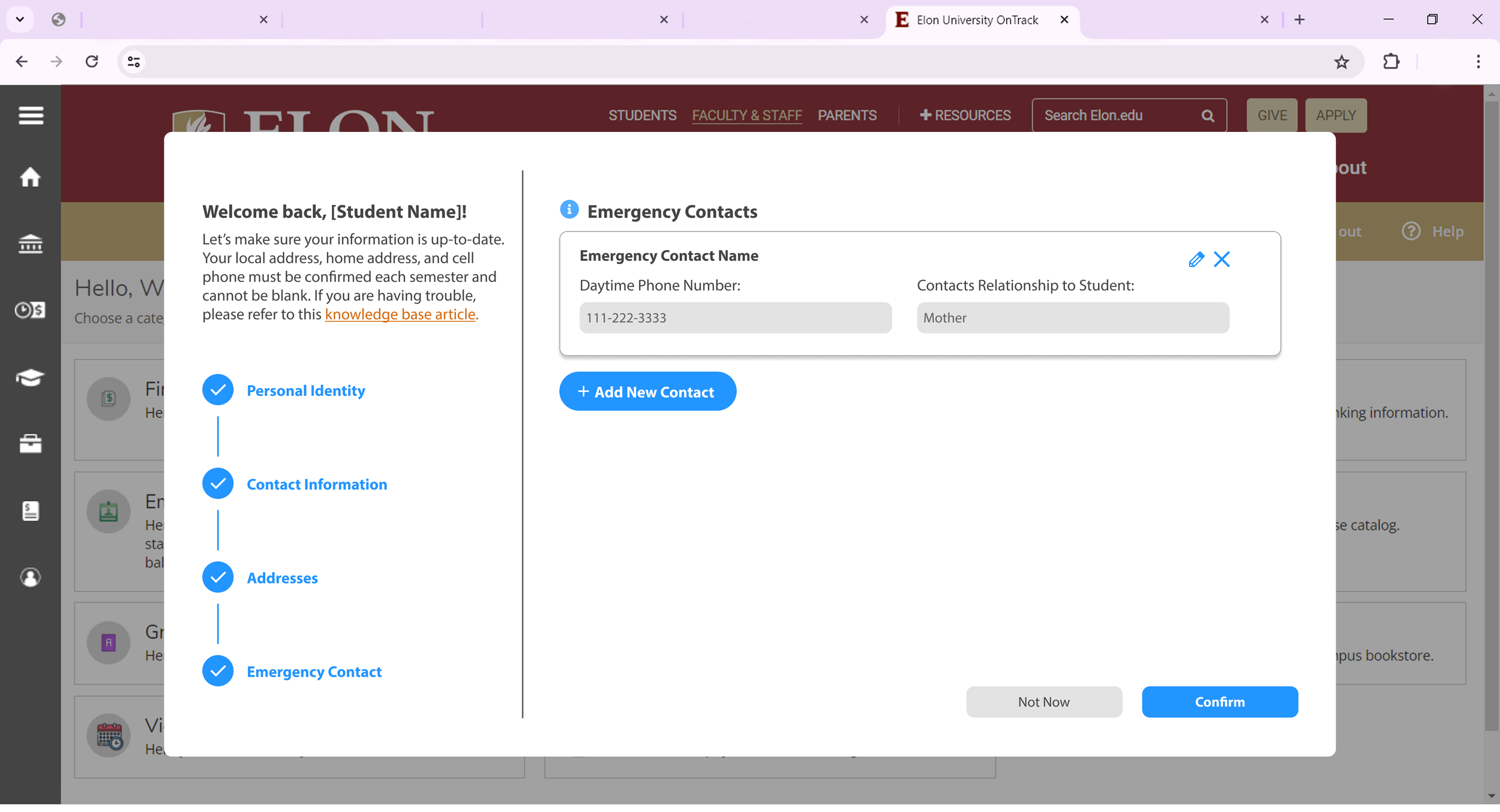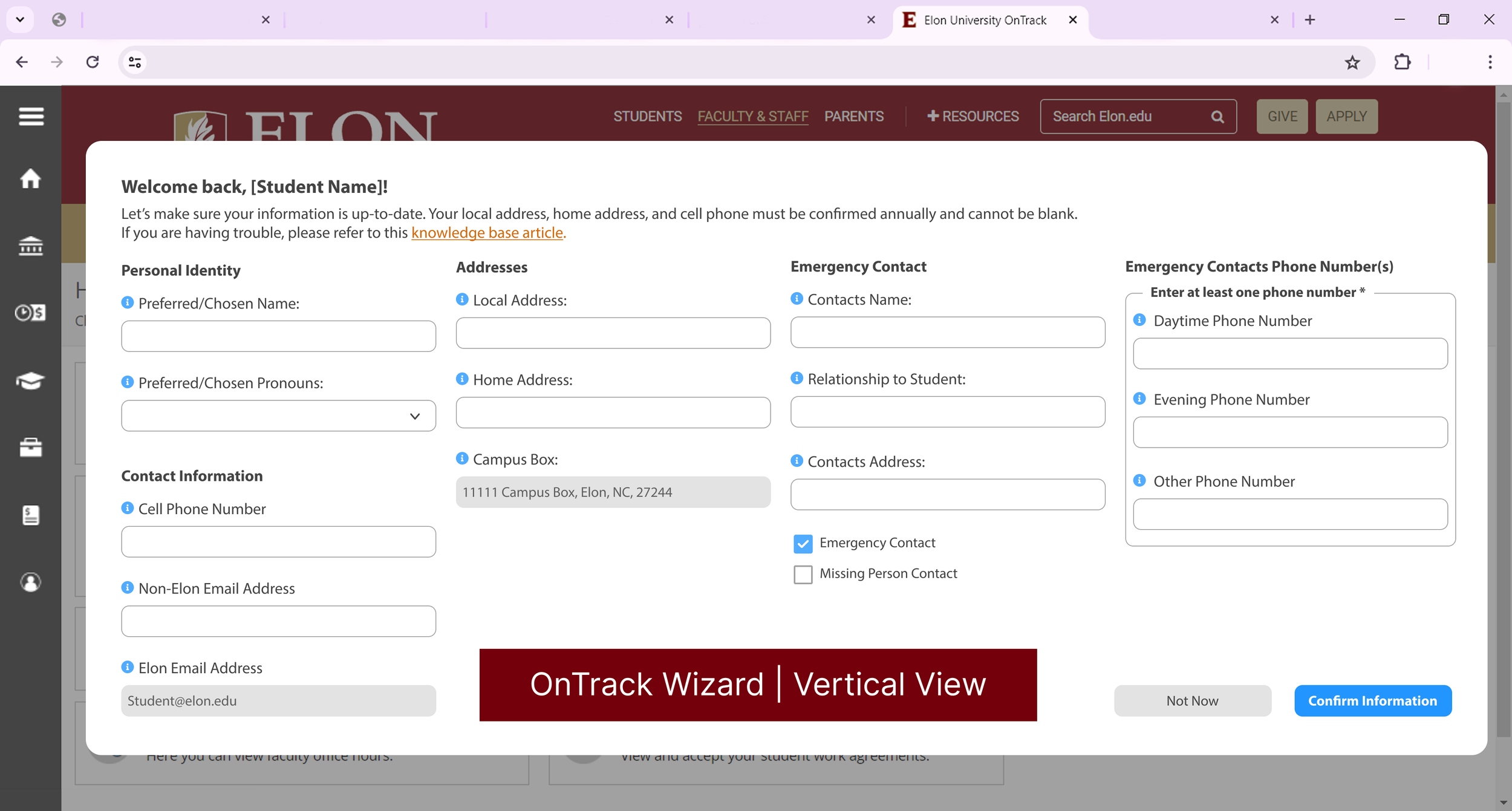 Elon Ontrack Student Contact Information Wizard