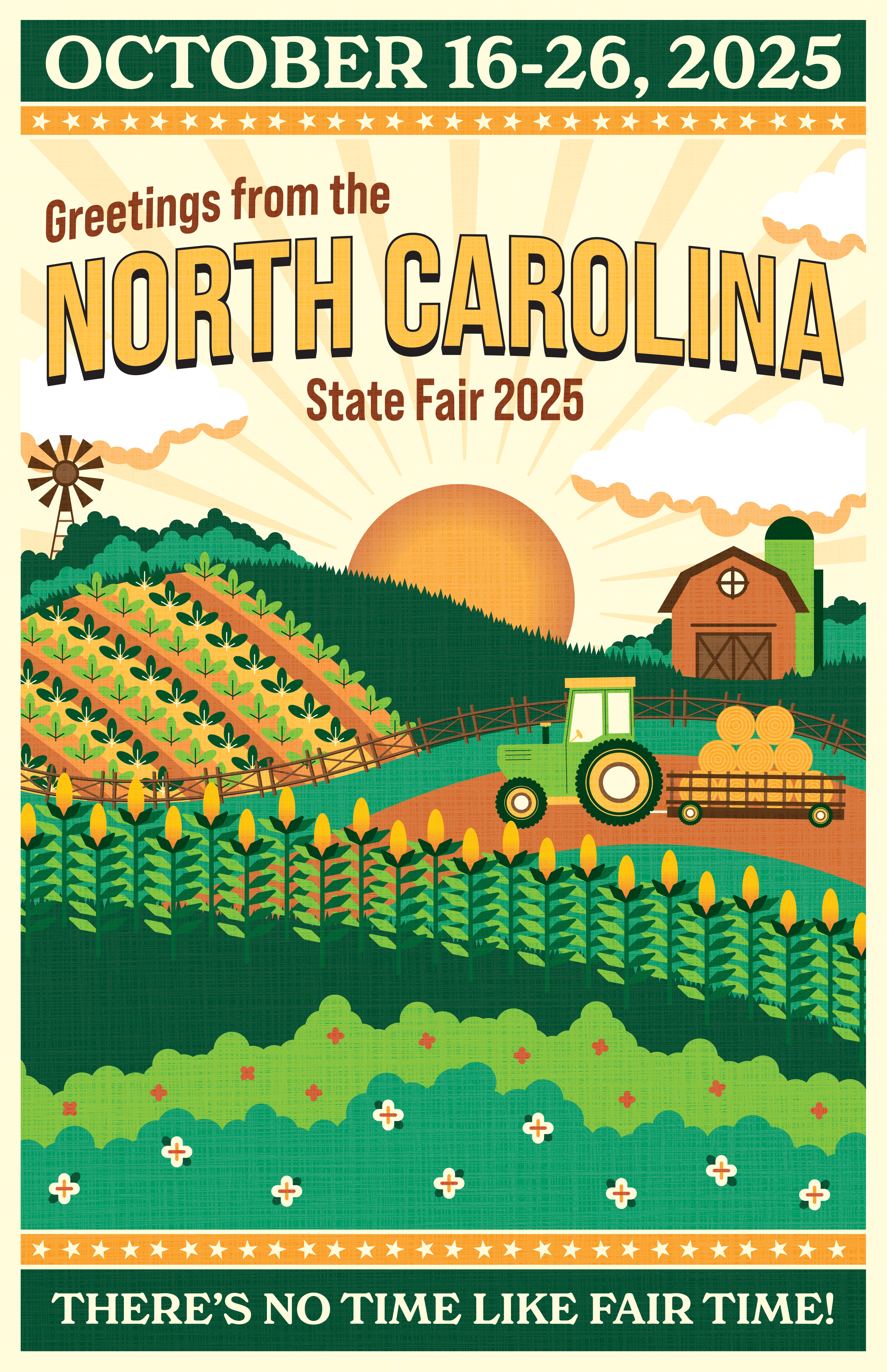 I designed this poster for the 2025 North Carolina state fair graphic design competition. This years theme was to highlight North Carolina agriculture while promoting the state fair.